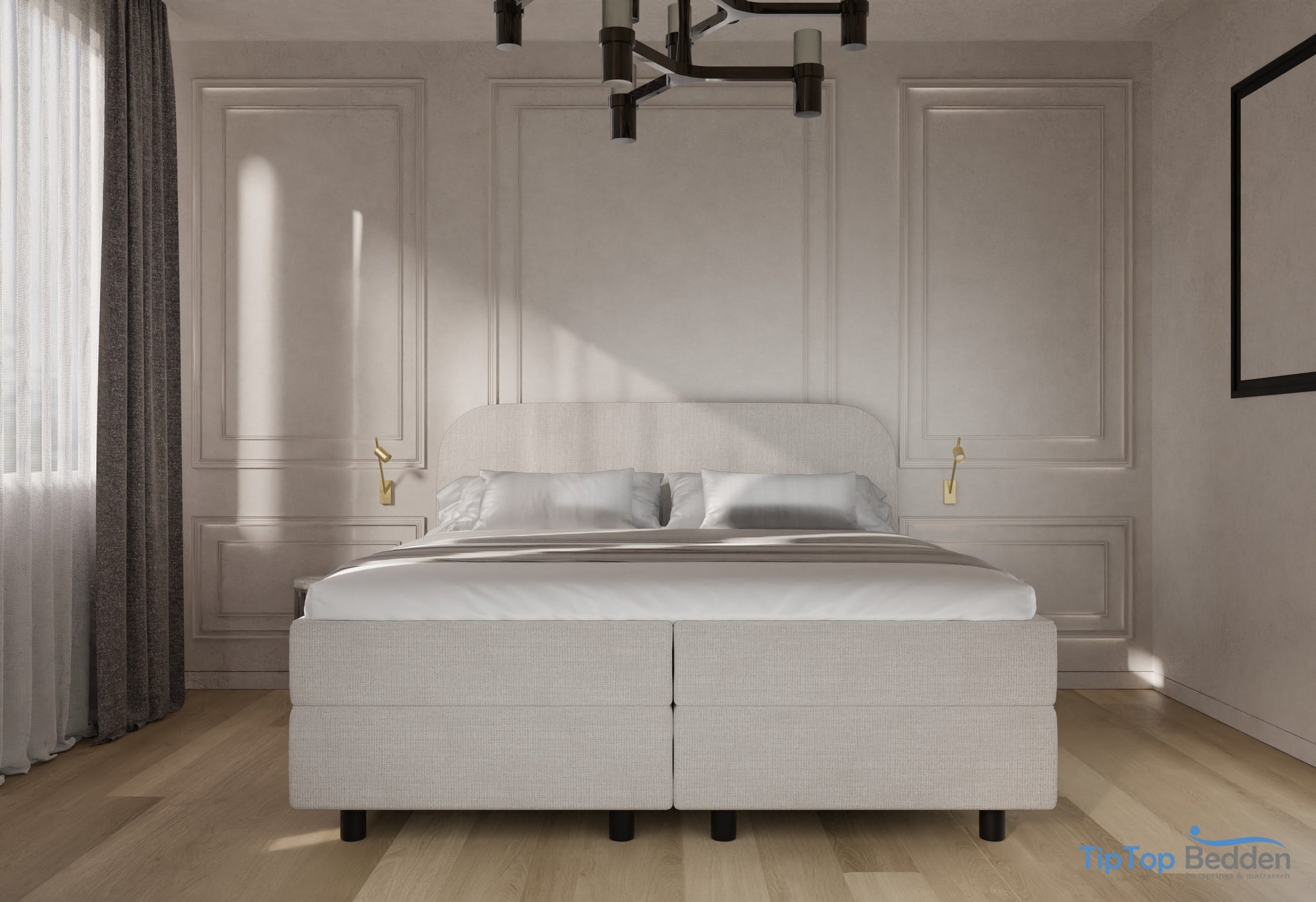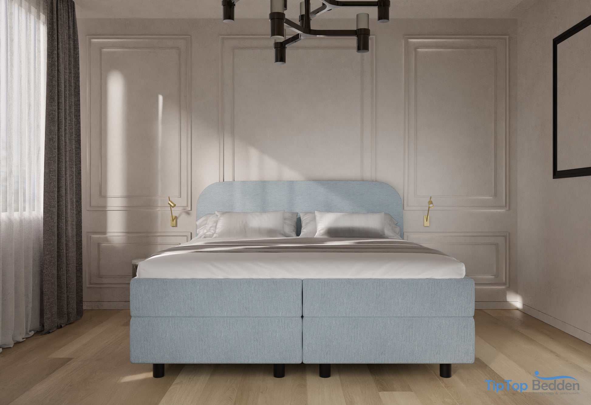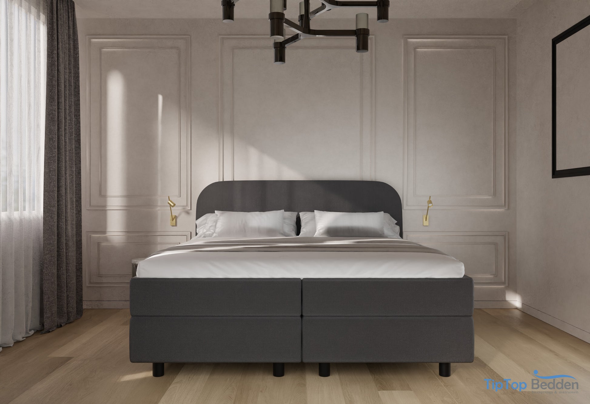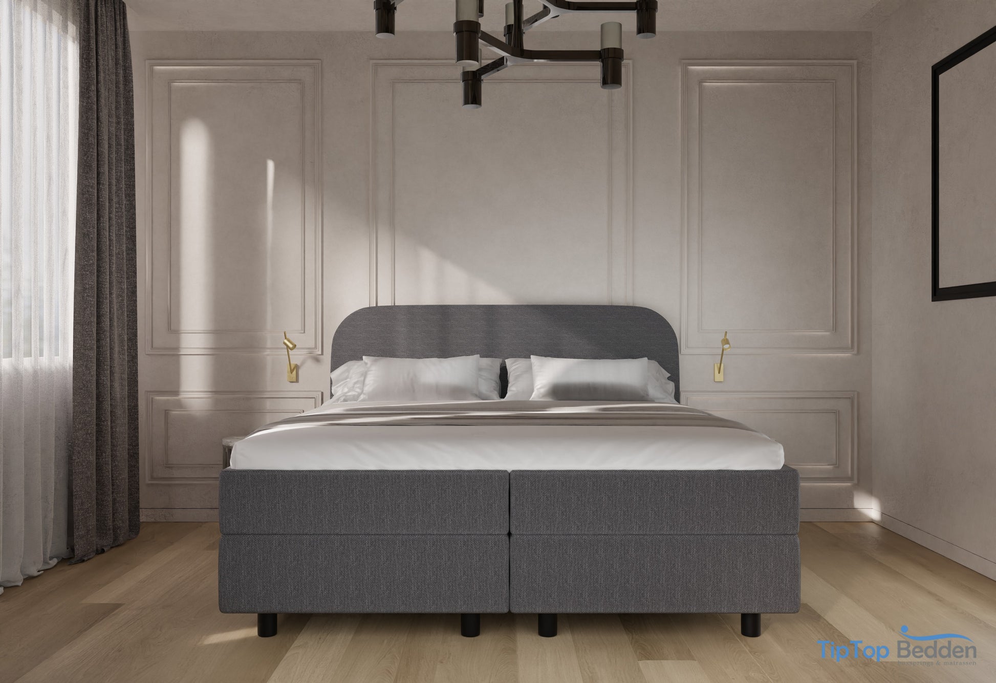 Een uniek design met het ronde hoofdbord van boxspring Burgos