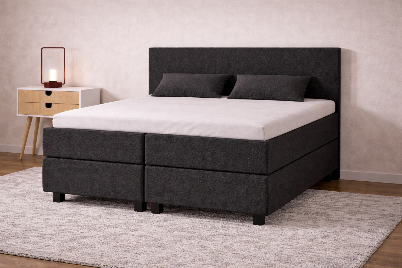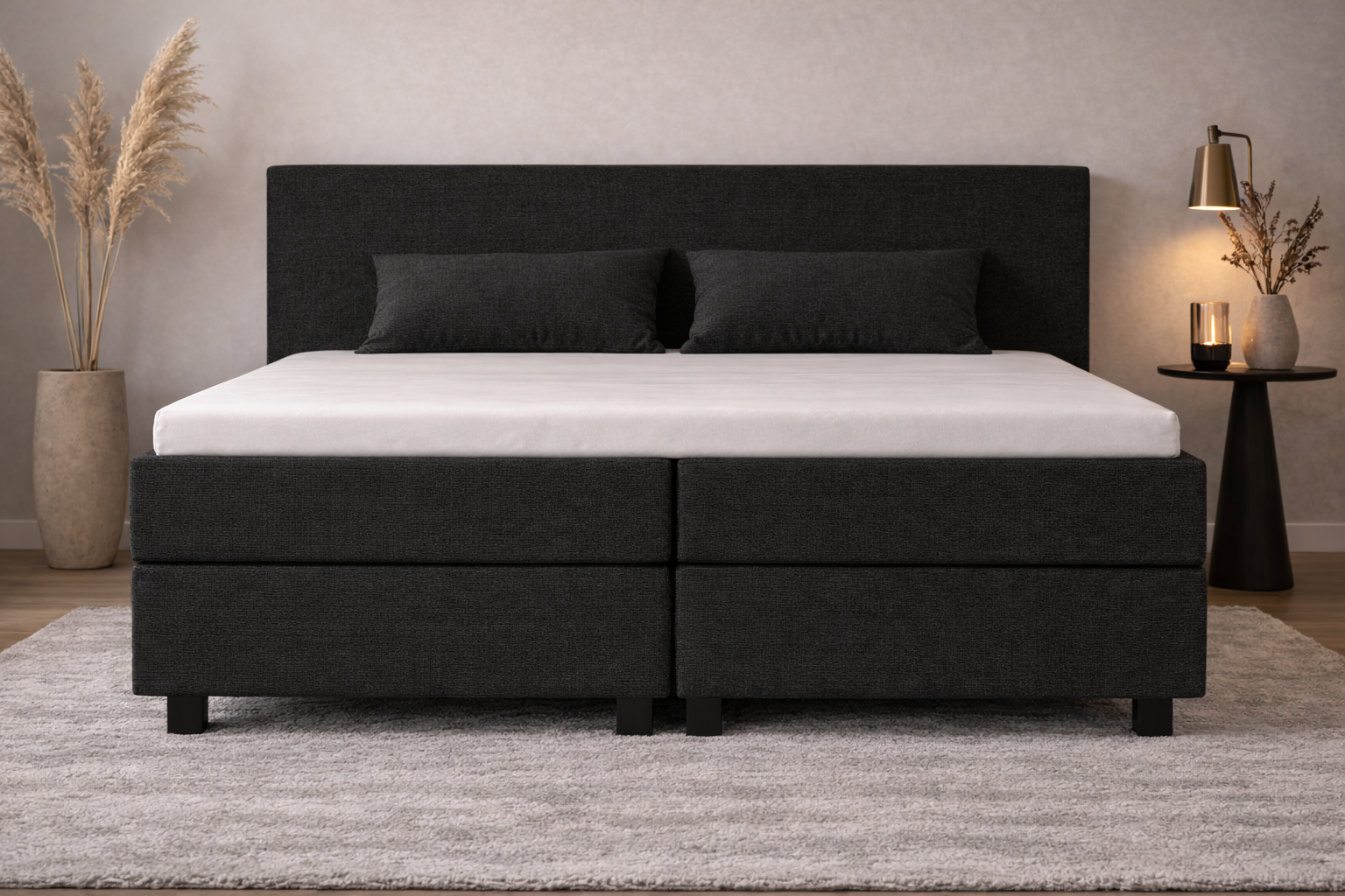 De Potenza is verkrijgbaar in vijf tijdloze kleuren: antraciet, beige, grijs en zwart, waardoor deze boxspring moeiteloos past in iedere slaapkamer. Daarnaast zijn de pootjes vrij te kiezen, zodat je het bed eenvoudig aanpast aan jouw persoonlijke stijl.