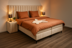 De Boxspring Retro XL is bekleed met een zachte beige stof die een warme en stijlvolle sfeer creëert. Het ruime hoofdbord geeft het bed een chique uitstraling en maakt jouw slaapkamer tot een exclusieve plek voor rust en ontspanning.