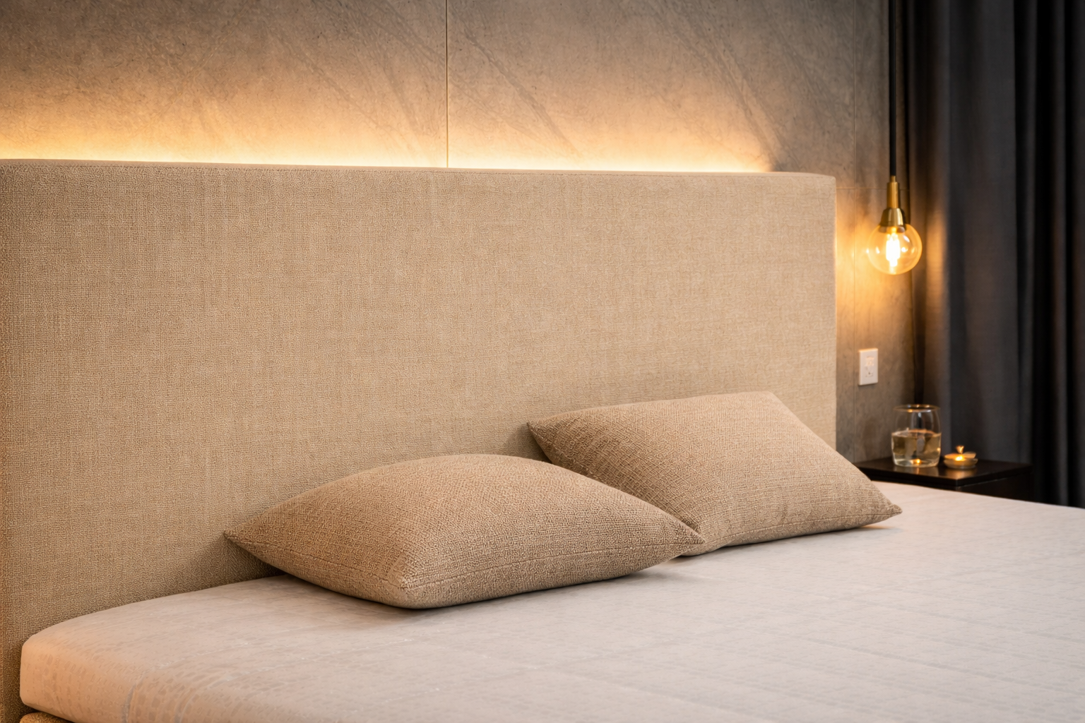 | Hoofdbord | Strak, minimalistisch, licht gewatteerd |