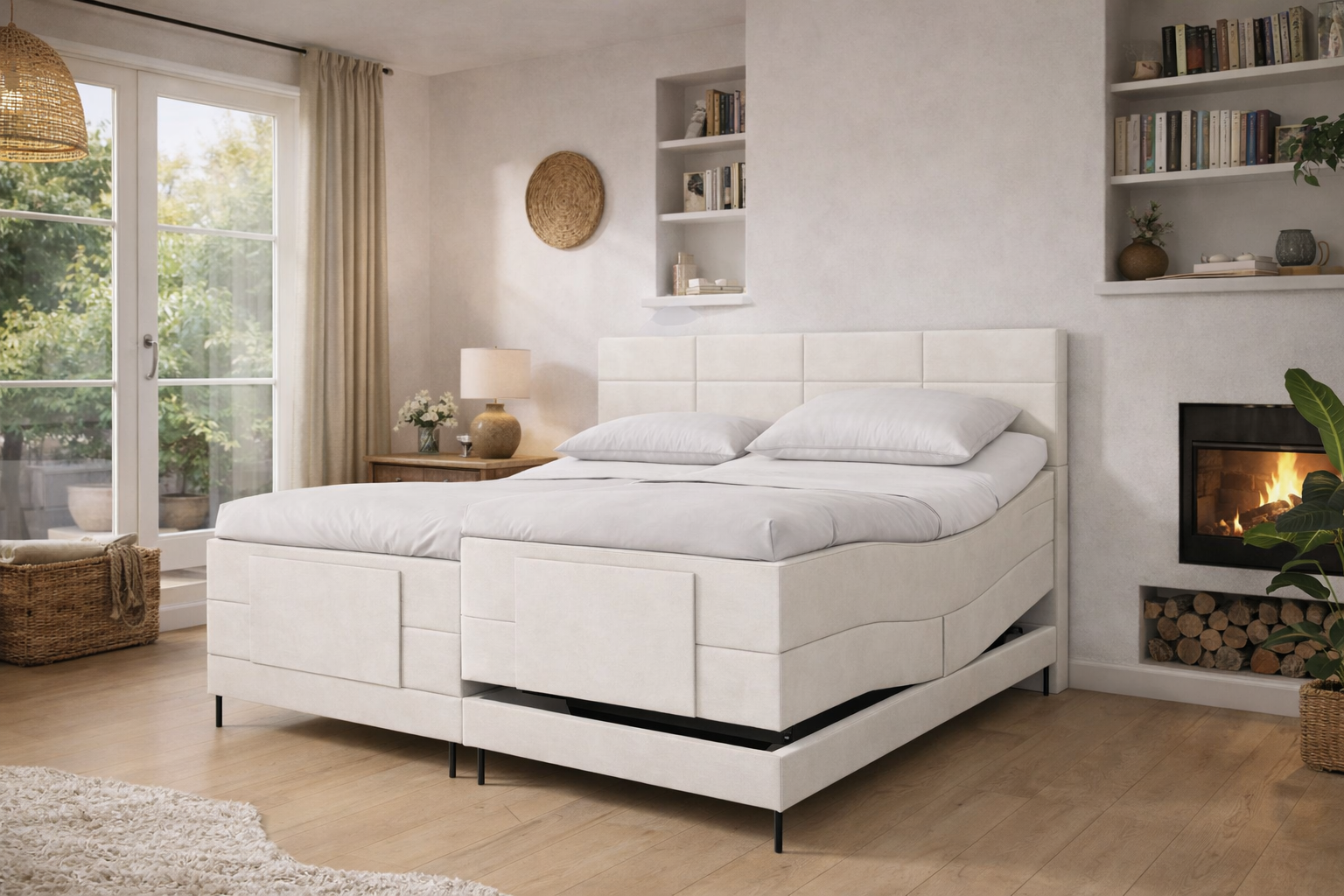 De Elektrische Boxspring Milaan Matt Velvet staat voor ultiem comfort, luxe uitstraling en gebruiksgemak. Dankzij de elektrische verstelbaarheid en hoogwaardige afwerking geniet je elke nacht van een ergonomische en ontspannen slaaphouding. Dit model combineert moderne technologie met een stijlvol, tijdloos design dat perfect past in iedere slaapkamer.